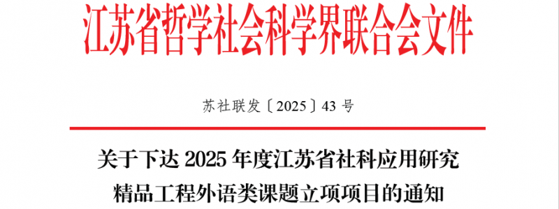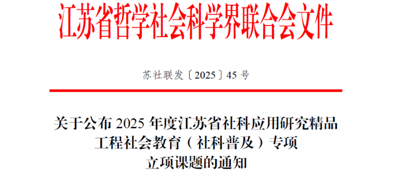 近日,江苏省哲学社会科学界联合会公布了2025年度江苏省社科联各专项课题立项名单,我校共获批七项课题,再获佳绩。