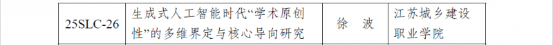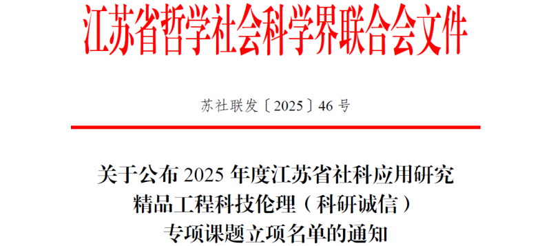 我校徐波主持的《生成式人工智能时代“学术原创性”的多维界定与核心导向研究》(编号:25SLC-26)获批2025年度江苏省社科应用研究精品工程科技伦理(科研诚信)专项课题。