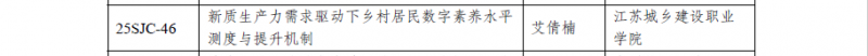 我校艾倩楠主持的《新质生产力需求驱动下乡村居民数字素养水平测度与提升机制》(编号:25SJC-46)获批2025年度江苏省社科应用研究精品工程社会教育(社科普及)专项课题。